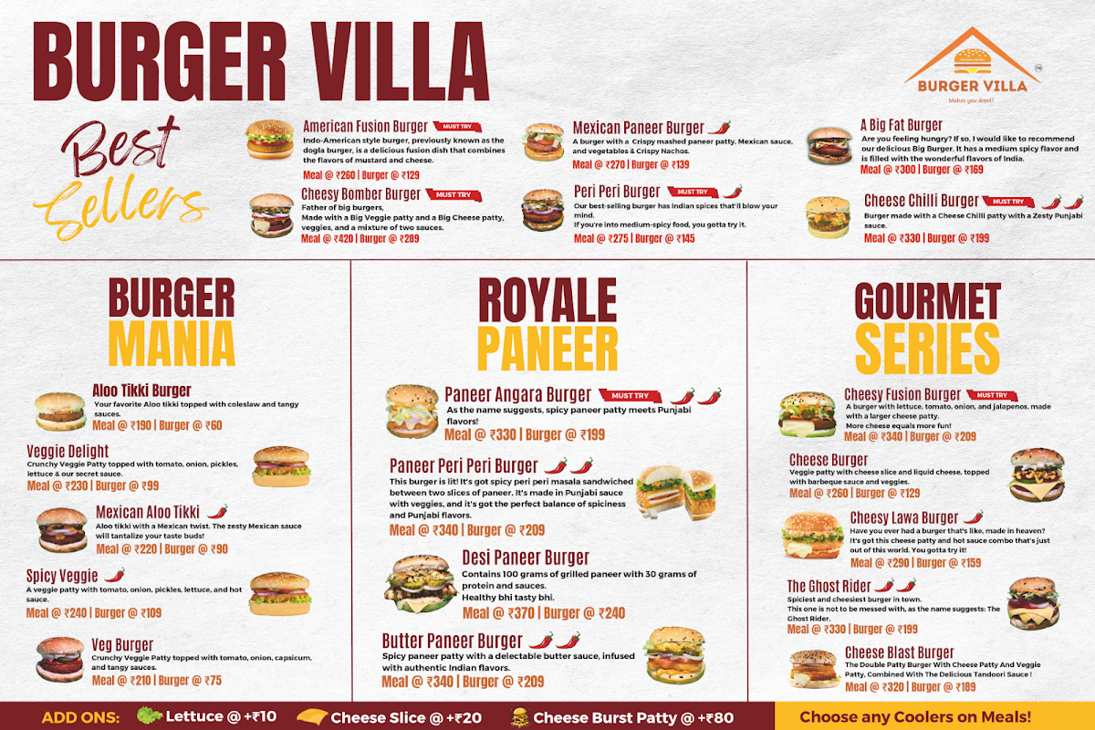 Now, let’s talk about the star of the show—the burgers! Burgervilla excels in serving a variety of delectable burgers that have captured the hearts of locals and visitors alike. According to satisfied patrons, the Mexican Burger, Chilly Paneer Burger, and the Paneer Supreme Burger are not to be missed. Each bite is a burst of flavors, and the quality is top-notch, making your taste buds dance with delight.